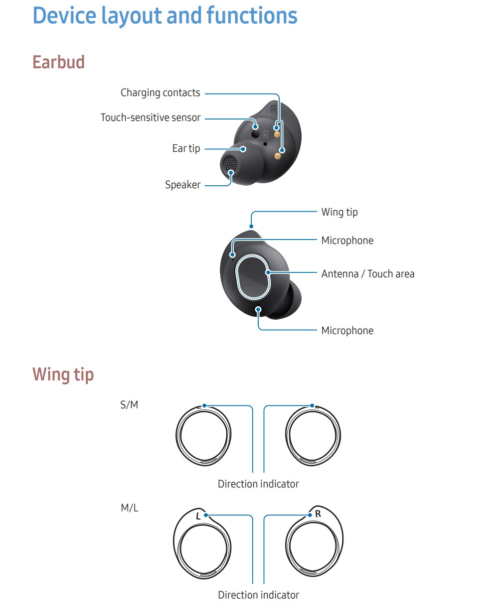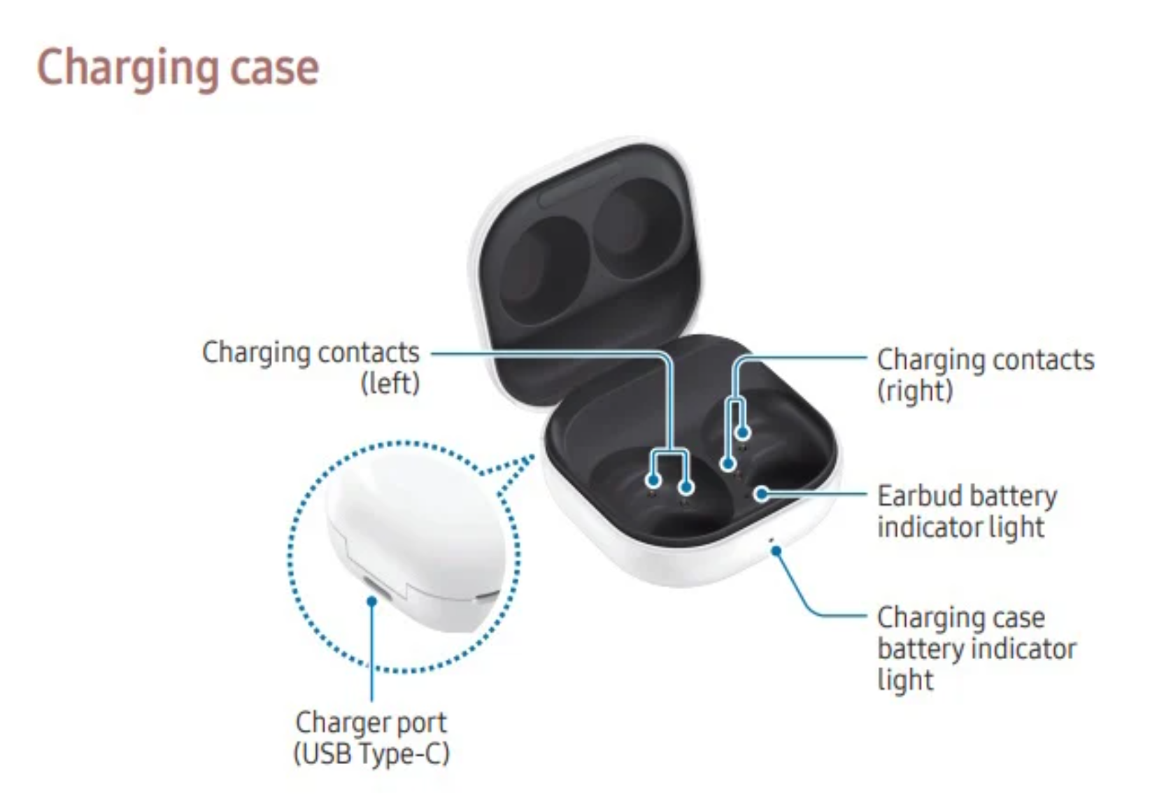 버즈 FE의 기능을 살펴보면, 버즈프로모델에서 지원되었던 액티브 노이즈 캔슬링 (줄여서 노캔) 기능과 주변 소리 듣기 기능을 지원합니다. 또한 3개 마이크를 통해 자동 빔포밍과 AI기반 소음제거 기술로 통화 시 더욱 선명한 통화음질을 제공한다고 합니다. 기존에 유출되었던 아래 세부 자료를 보면 touch area가 커지면서 버즈 동작제어가 손쉬울 것으로 보입니다. 버즈프로의 경우에는 둥근 형태이다 보니 실수로 누르거나 잘 안 눌리는 현상이 많았습니다.