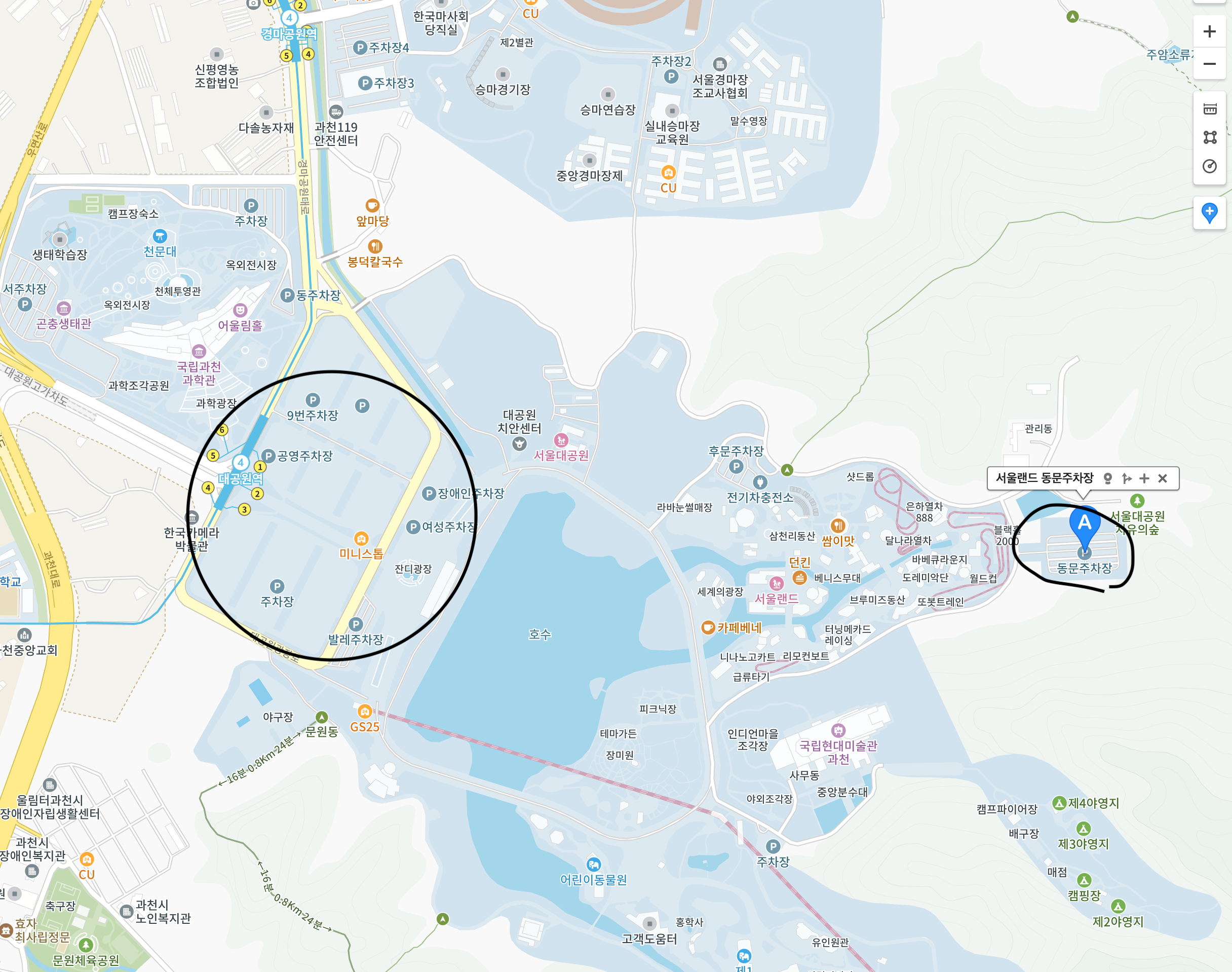 하지만, 서울랜드 정문까지는 대략 도보 20분으로 상당히 오래 걸어야 합니다.