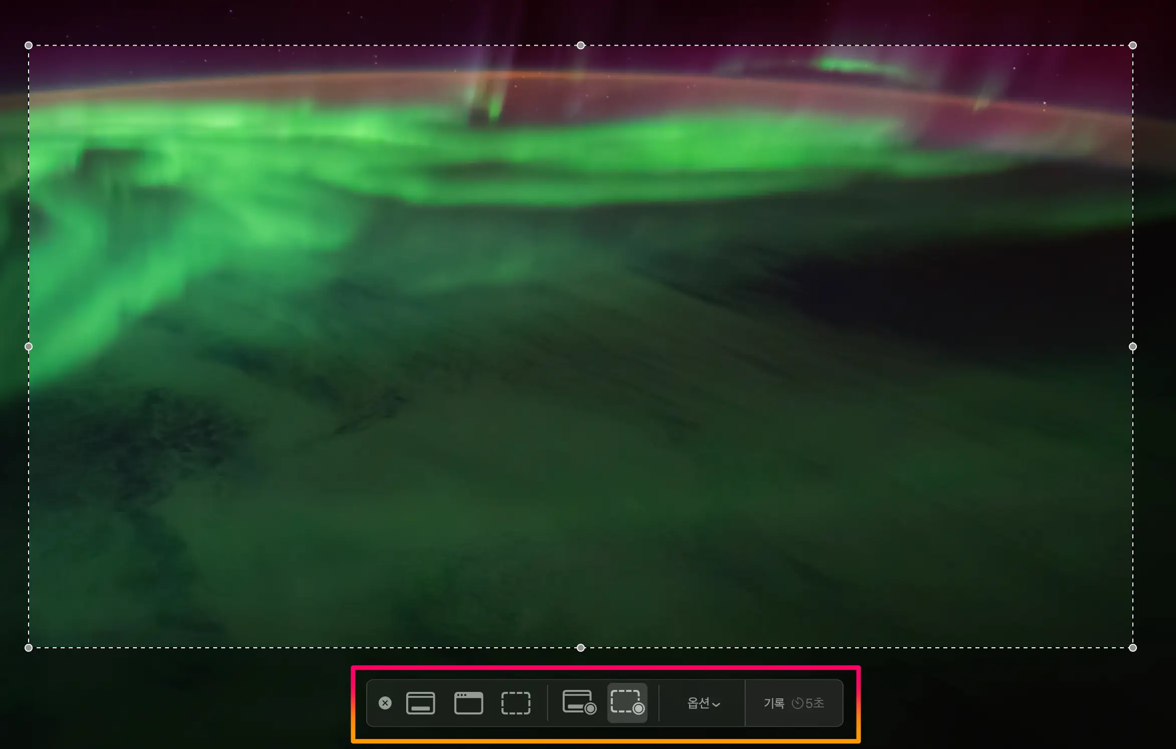 화면녹화 단축키는 "Command+shift+5"