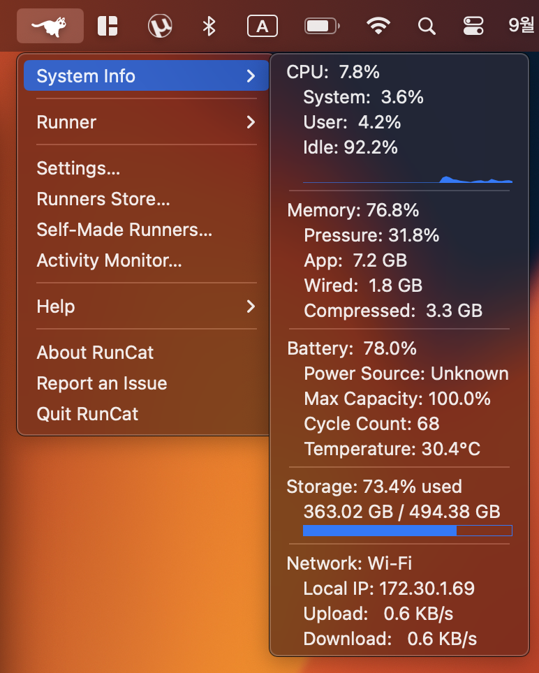 그렇다면 맥북으로 구동할때 cpu사용량는 어떻게 변화할까요?