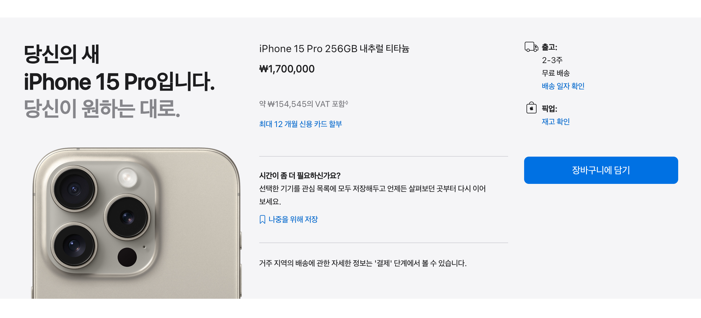 • 아이폰 15 Pro 256기가(할인적용시 1,615,000원) --> 바로 사러가기 클릭!