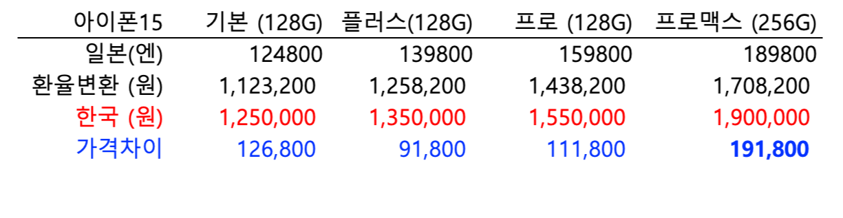 어쨌든 아이폰 15의 가격정책은 정해져있고