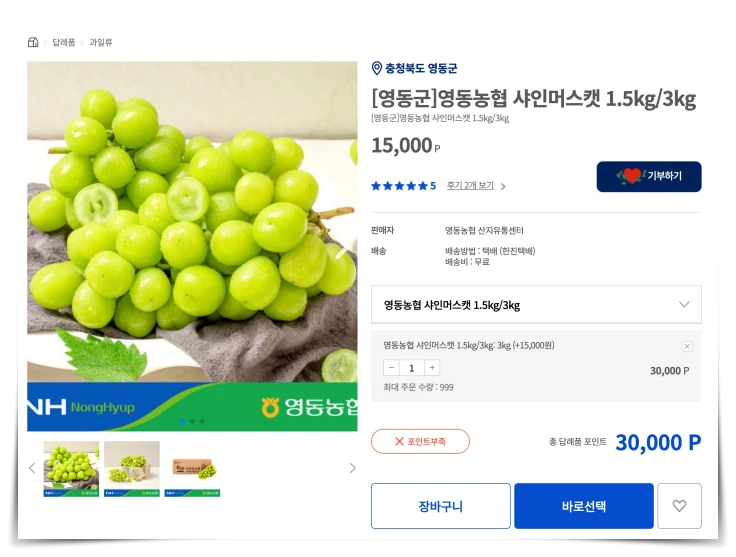 고향사랑e음 사이트에서 기부부터 답례품 선택까지 가능합니다. 고향사랑e음 사이트를 가입한 후, 고향(지자체)을 선택하여 기부를 하면 바로 답례품 포인트 3만 원을 받게 됩니다. 3만 원으로 인터넷쇼핑하듯이 답례품을 선택하여 주문하시면 됩니다.