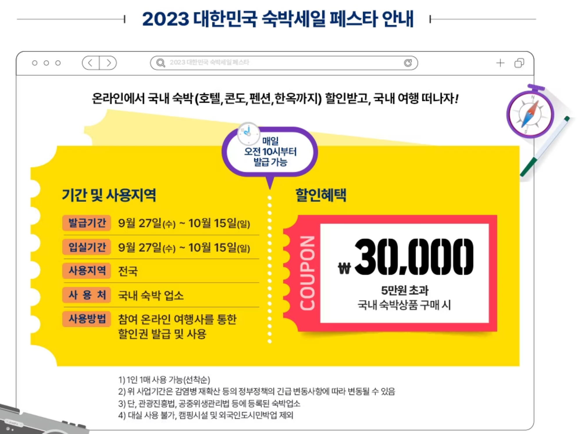 - 사용 방법 : 온라인 여행몰에서 5만원 초과 상품 구매시 3만원 할인