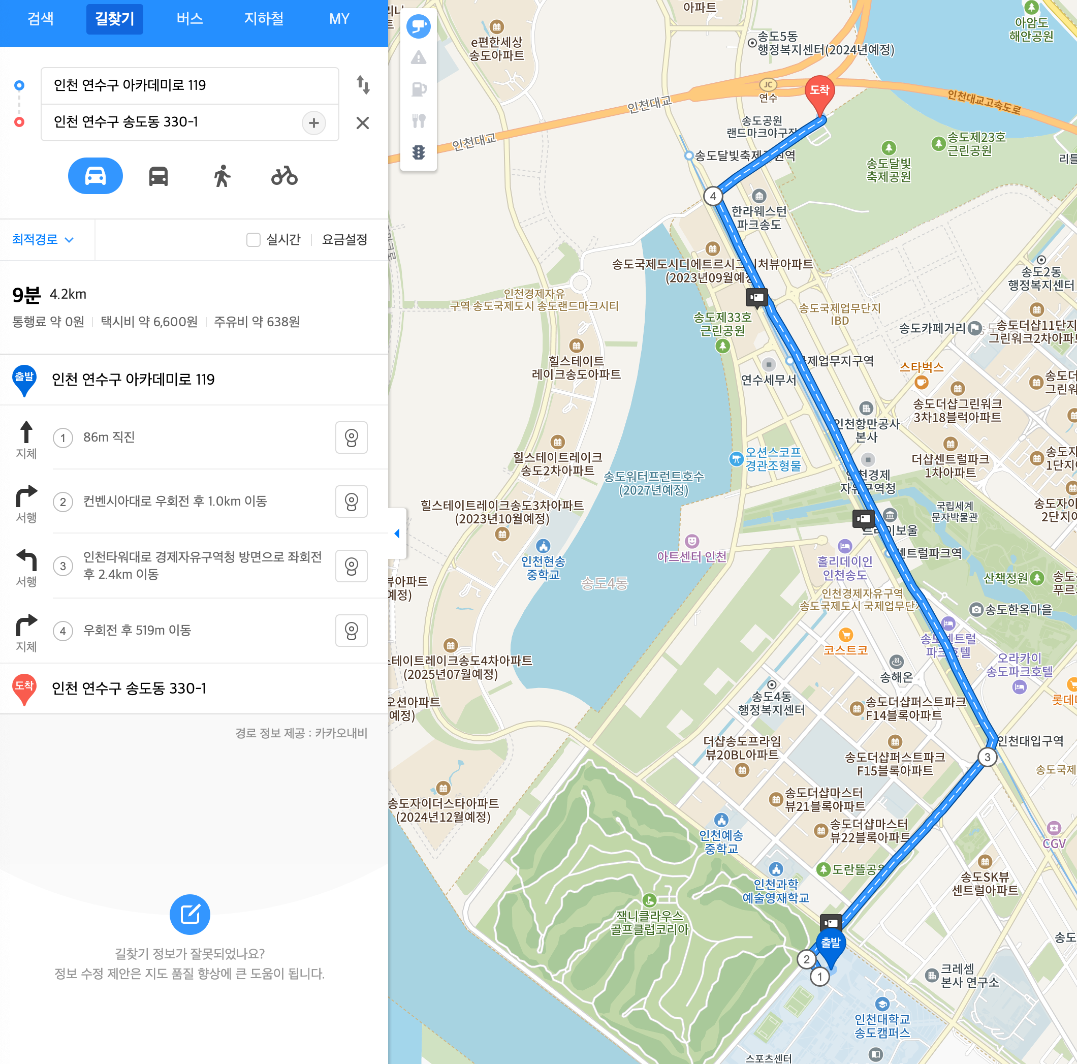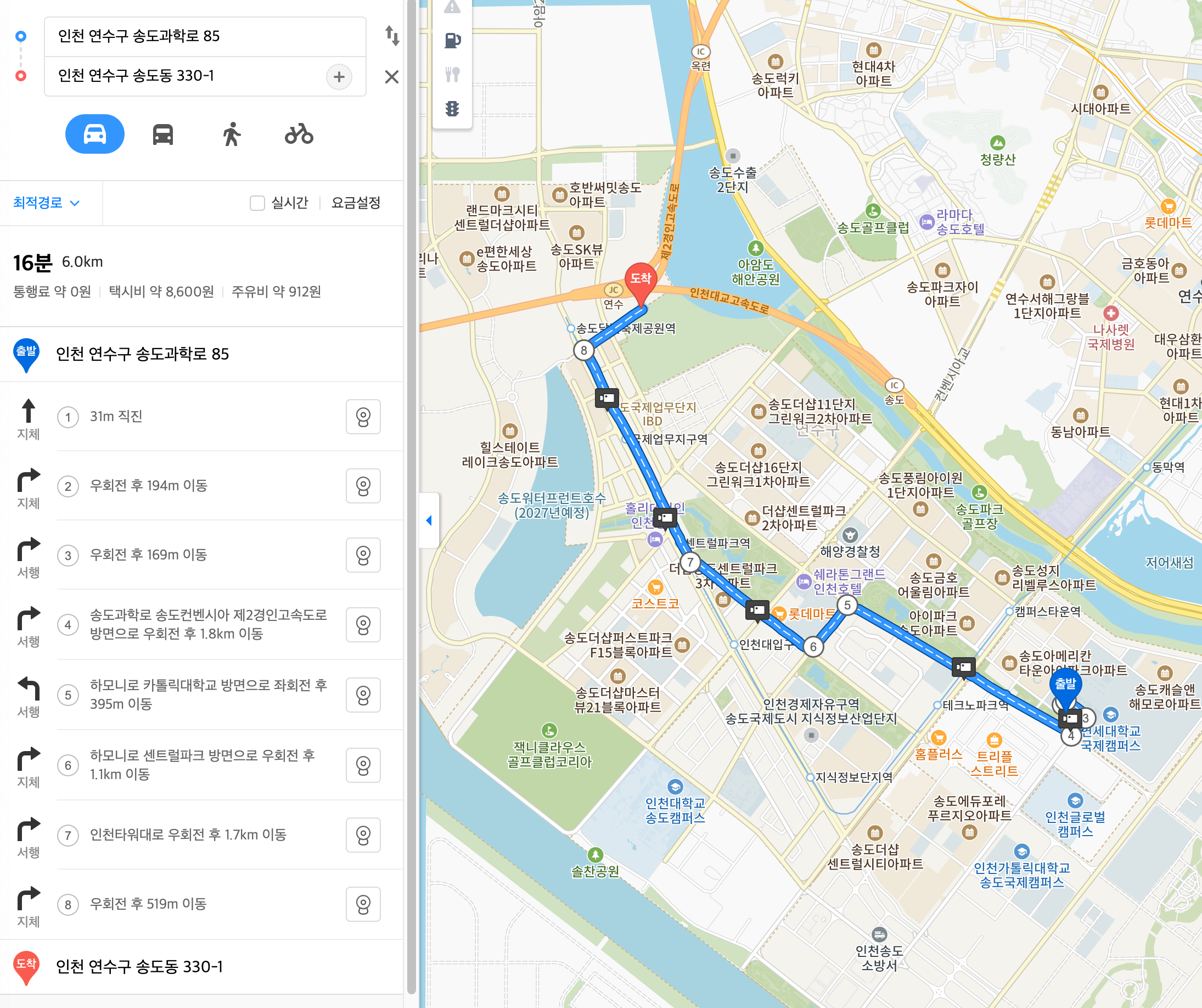 제4주차장 (인천대학교 송도캠퍼스) 에서 행사장까지