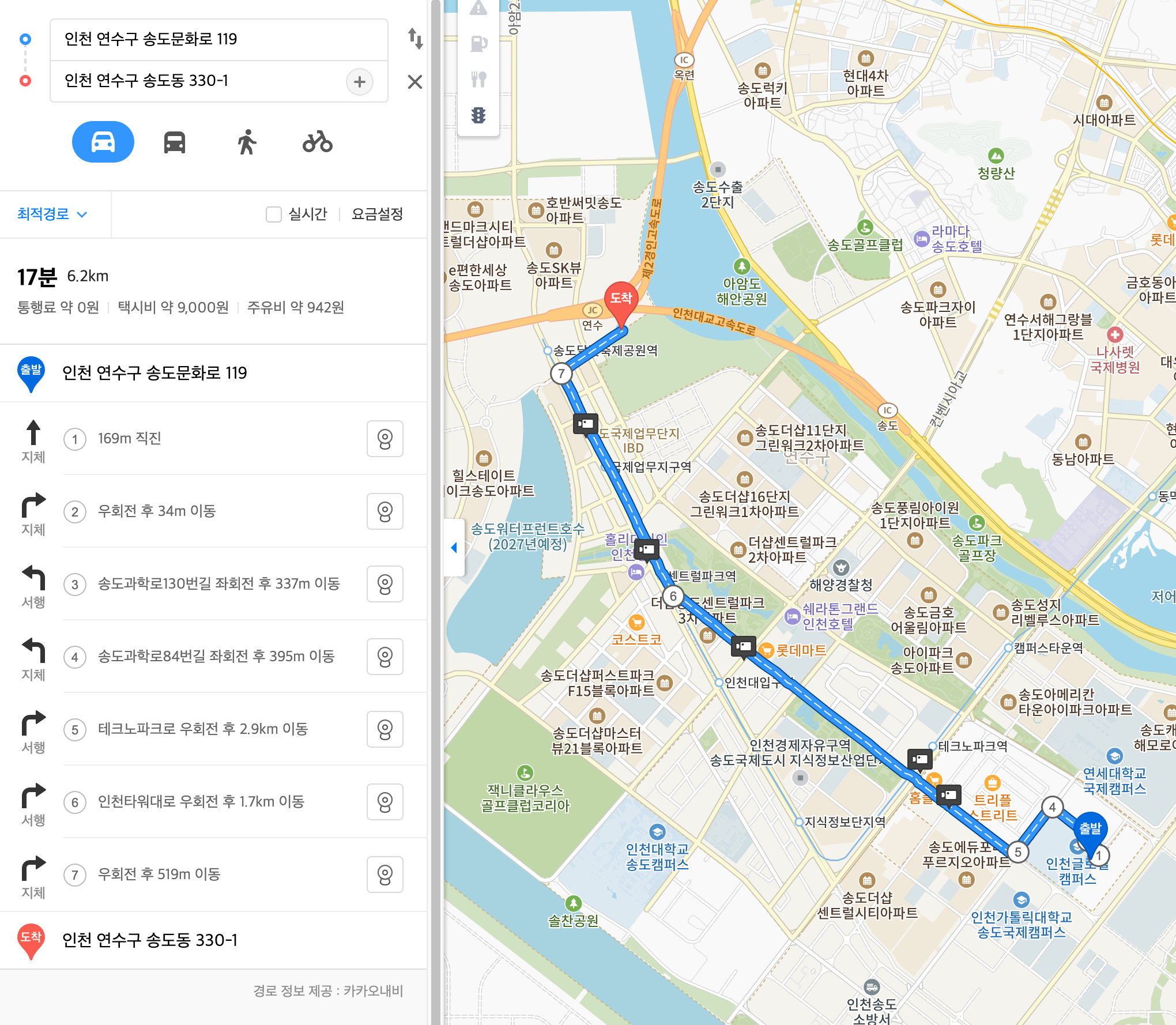 제2주차장 (인천글로벌캠퍼스) 에서 행사장까지