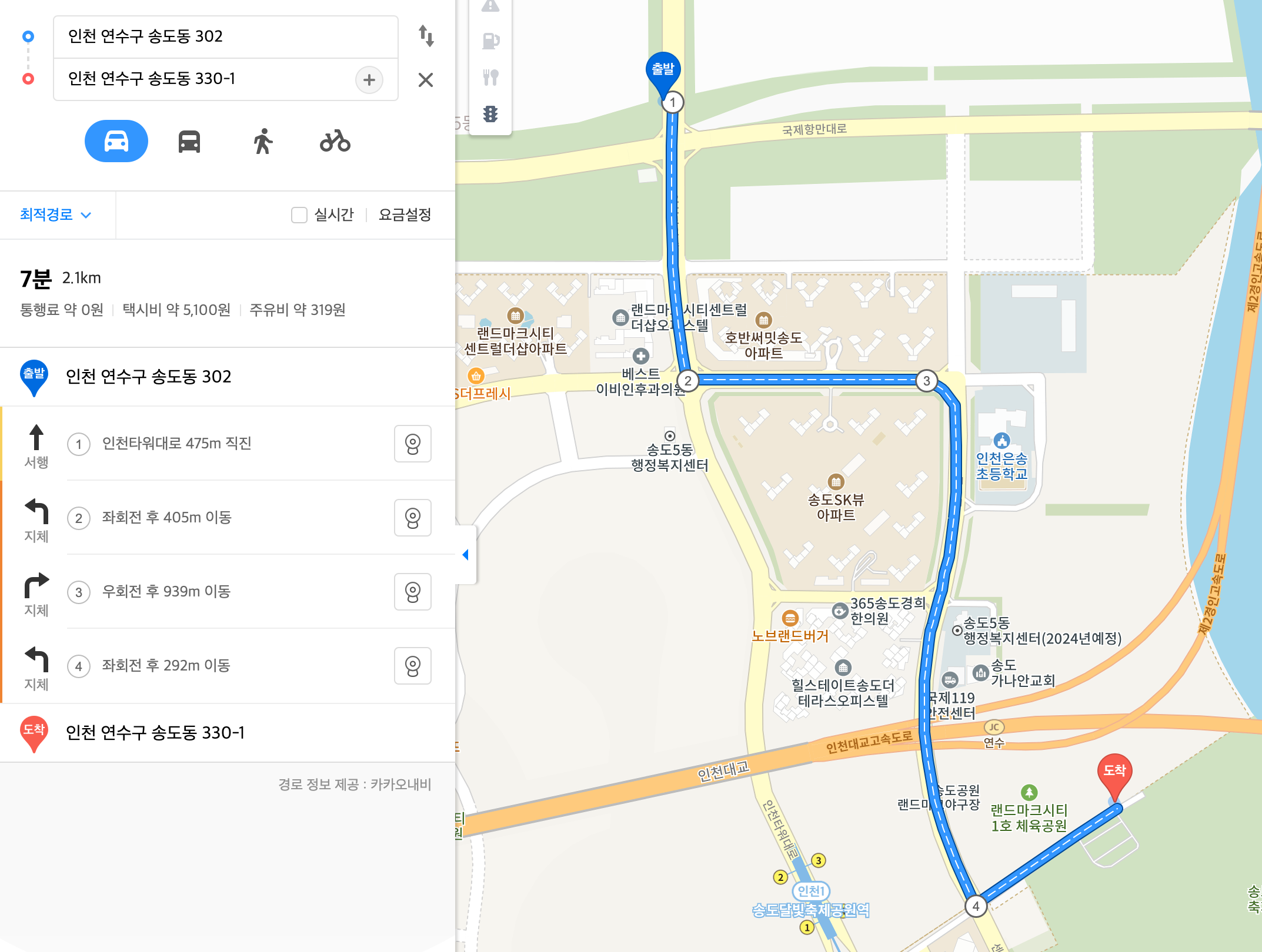 제4주차장 (인천대학교 송도캠퍼스) 에서 행사장까지
