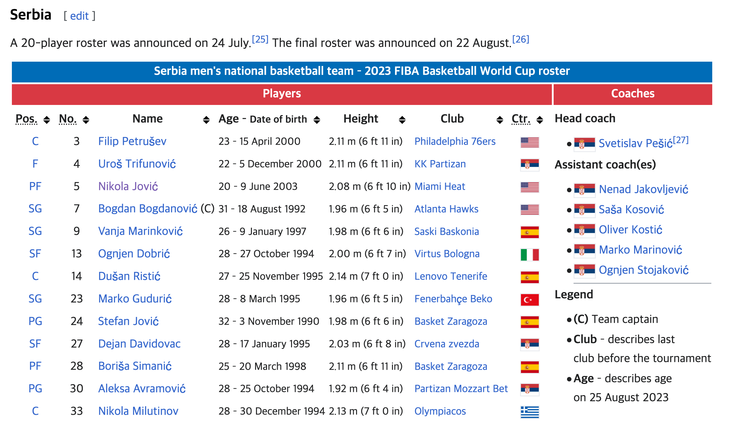 농구월드컵 결승전의 주인공인 독일과 세르비아의 로스터를 알아보겠습니다.