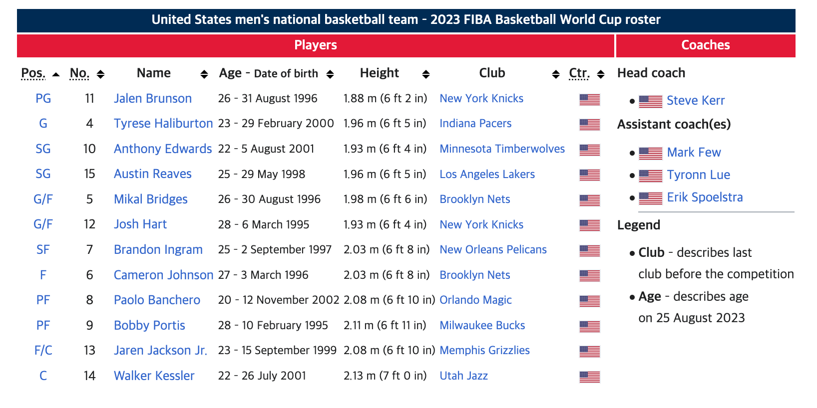 싹~물갈이한, 2023 미국 농구 대표팀 로스터