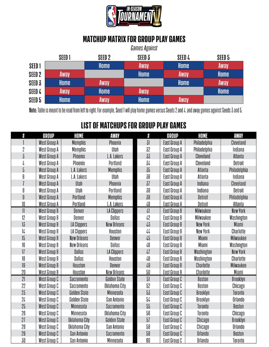 NBA 인시즌 토너먼트 : 일정, 진행방식, 조편성